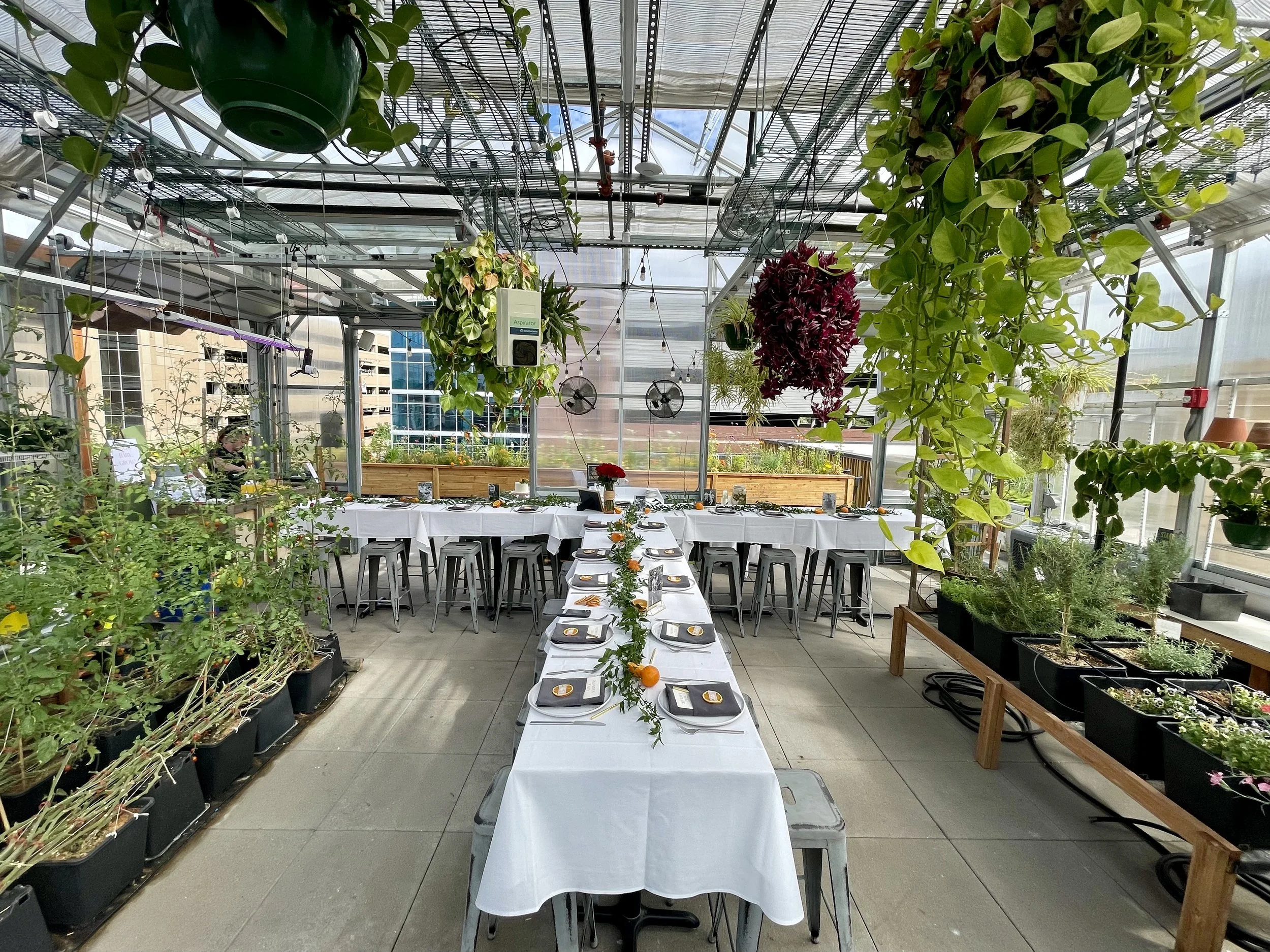 Eat your veggies and watch them grow too. Our rooftop dining area surrounds our climate controlled greenhouse. Inside, an abundance of tomatoes, peppers, beets, carrots and herbs fill the space.